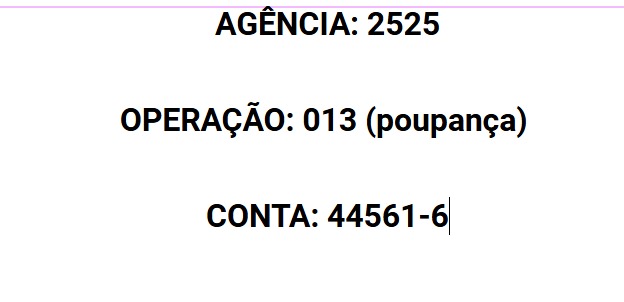 PARA PAGAMENTO NA LOTÉRICA, SEGUE A CONTA PARA DEPÓSITO: